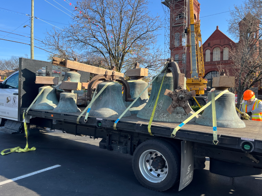 The bells will be removed and transported to the Verdin Company of Cincinnati, Ohio, for full restoration.